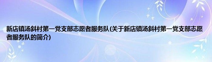 1、 新店镇汤斜村第一党支部志愿者服务队是由新店镇领导下的志愿团体。