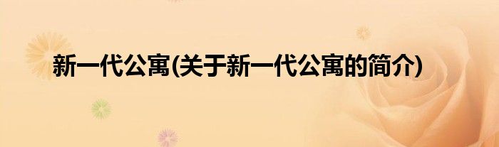 新一代公寓(关于新一代公寓的简介)