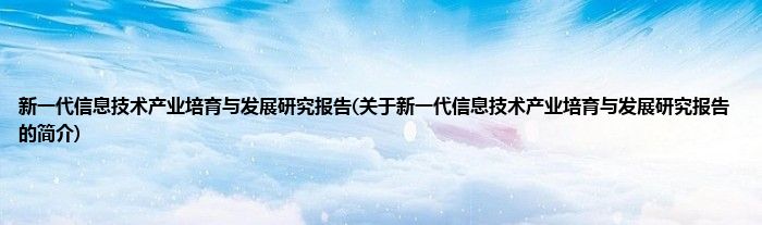 大家好,新一代信息技术产业培育与发展研究报告,关于新一代信息技术产业培育与发展研究报告的简介很多人还不知道,现在让我们一起来看看吧!