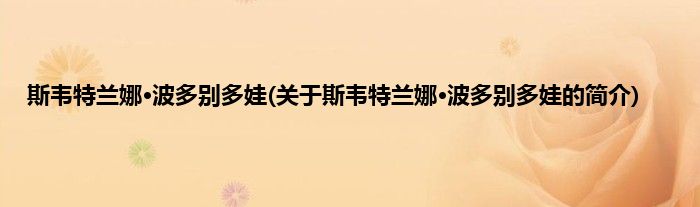 大家好,斯韦特兰娜·波多别多娃,关于斯韦特兰娜·波多别多娃的简介很多人还不知道,现在让我们一起来看看吧!