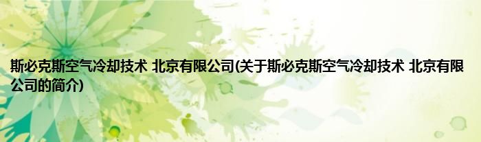 大家好,斯必克斯空气冷却技术 北京有限公司,关于斯必克斯空气冷却技术 北京有限公司的简介很多人还不知道,现在让我们一起来看看吧!