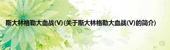大家好,斯大林格勒大血战,V,关于斯大林格勒大血战,V的简介很多人还不知道,现在让我们一起来看看吧!