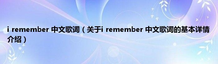 本文关于i remember 中文歌词的基本详情介绍就讲解完毕,希望对大家有所帮助。