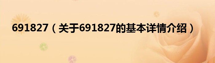 本文关于691827的基本详情介绍就讲解完毕,希望对大家有所帮助。