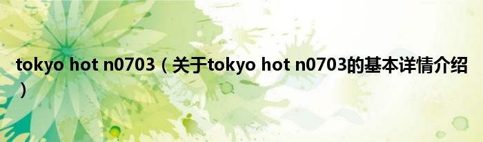 本文关于tokyo hot n0703的基本详情介绍就讲解完毕,希望对大家有所帮助。