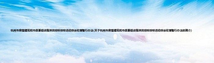大家好,杭州市房屋建筑和市政基础设施项目招标投标活动投诉处理暂行办法,关于杭州市房屋建筑和市政基础设施项目招标投标活动投诉处理暂行办法的简介很多人还不知道,现在让我们一起来看看吧!