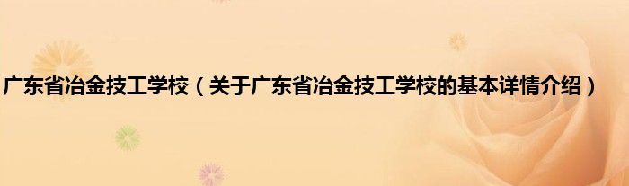 本文关于广东省冶金技工学校的基本详情介绍就讲解完毕,希望对大家有所帮助。