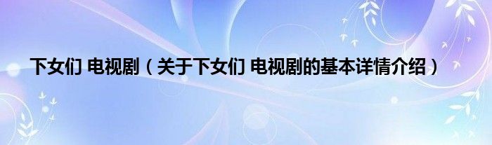 本文关于下女们 电视剧的基本详情介绍就讲解完毕,希望对大家有所帮助。