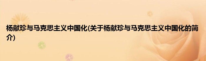 本文关于杨献珍与马克思主义中国化的简介就讲解完毕,希望对大家有所帮助。