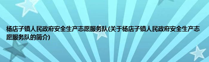 本文关于杨店子镇人民政府安全生产志愿服务队的简介就讲解完毕,希望对大家有所帮助。
