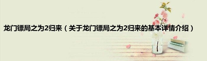 本文关于龙门镖局之为2归来的基本详情介绍就讲解完毕,希望对大家有所帮助。
