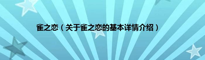本文关于雀之恋的基本详情介绍就讲解完毕,希望对大家有所帮助。