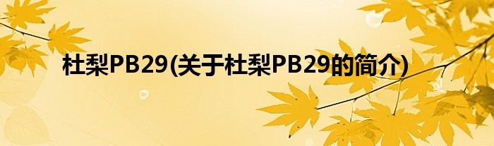 本文关于杜梨PB29的简介就讲解完毕,希望对大家有所帮助。