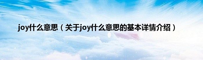 本文关于joy什么意思的基本详情介绍就讲解完毕,希望对大家有所帮助。