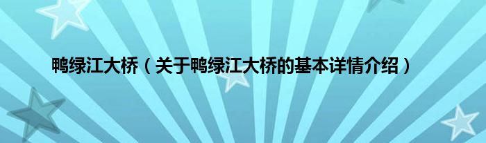 本文关于鸭绿江大桥的基本详情介绍就讲解完毕,希望对大家有所帮助。