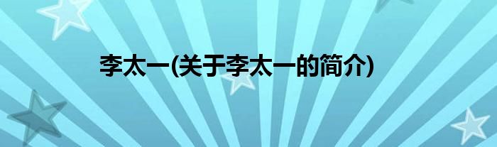李太一(关于李太一的简介)