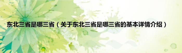 本文关于东北三省是哪三省的基本详情介绍就讲解完毕,希望对大家有所帮助。
