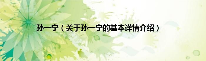 本文关于孙一宁的基本详情介绍就讲解完毕,希望对大家有所帮助。