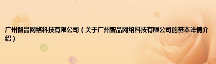 本文关于广州智品网络科技有限公司的基本详情介绍就讲解完毕,希望对大家有所帮助。