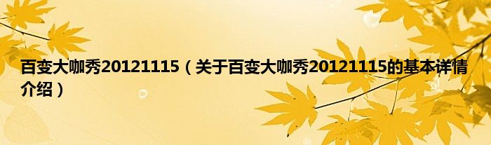本文关于百变大咖秀20121115的基本详情介绍就讲解完毕,希望对大家有所帮助。