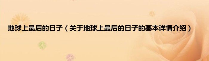 地球上最后的日子(关于地球上最后的日子的基本详情介绍)