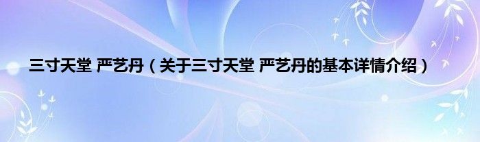 本文关于三寸天堂 严艺丹的基本详情介绍就讲解完毕,希望对大家有所帮助。
