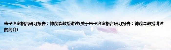 本文关于朱子治家格言研习报告:钟茂森教授讲述的简介就讲解完毕,希望对大家有所帮助。
