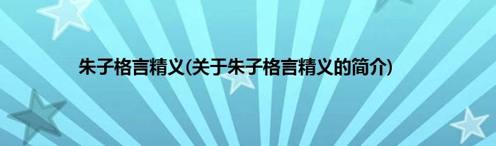 本文关于朱子格言精义的简介就讲解完毕,希望对大家有所帮助。