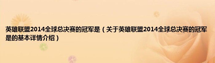 本文关于英雄联盟2014全球总决赛的冠军是的基本详情介绍就讲解完毕,希望对大家有所帮助。