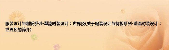本文关于服装设计与制板系列·潮流时装设计:世界顶的简介就讲解完毕,希望对大家有所帮助。