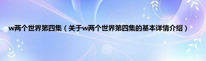 本文关于w两个世界第四集的基本详情介绍就讲解完毕,希望对大家有所帮助。