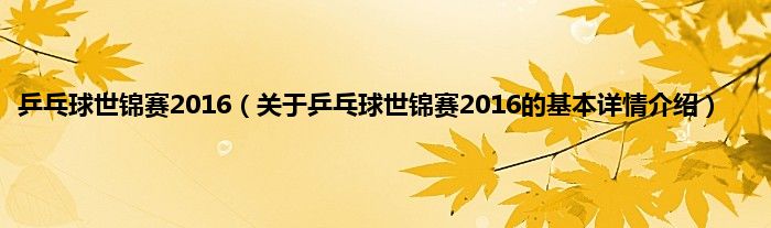 本文关于乒乓球世锦赛2016的基本详情介绍就讲解完毕,希望对大家有所帮助。