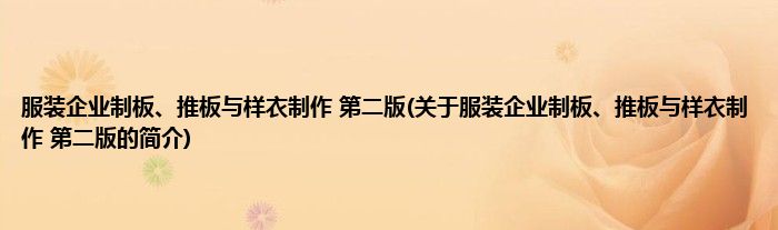 本文关于服装企业制板、推板与样衣制作 第二版的简介就讲解完毕,希望对大家有所帮助。