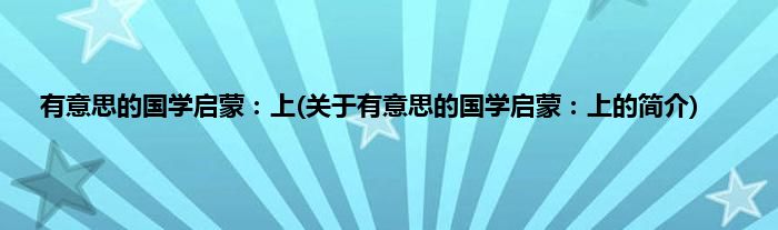 大家好,有意思的国学启蒙:上,关于有意思的国学启蒙:上的简介很多人还不知道,现在让我们一起来看看吧!