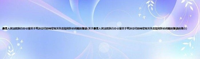 大家好,最高人民法院执行办公室关于判决交付的特定物灭失后如何折价问题的复函,关于最高人民法院执行办公室关于判决交付的特定物灭失后如何折价问题的复函的简介很多人还不知道,现在让我们一起来看看吧!