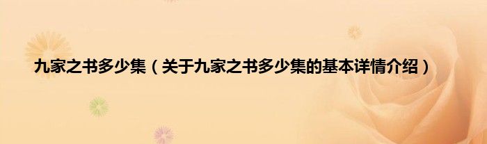 本文关于九家之书多少集的基本详情介绍就讲解完毕,希望对大家有所帮助。