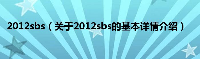 本文关于2012sbs的基本详情介绍就讲解完毕,希望对大家有所帮助。
