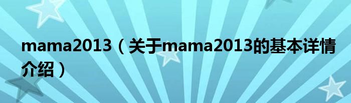 本文关于mama2013的基本详情介绍就讲解完毕,希望对大家有所帮助。