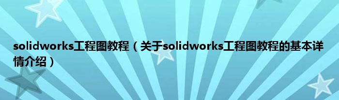 本文关于solidworks工程图教程的基本详情介绍就讲解完毕,希望对大家有所帮助。