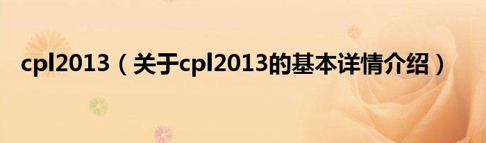 本文关于cpl2013的基本详情介绍就讲解完毕,希望对大家有所帮助。