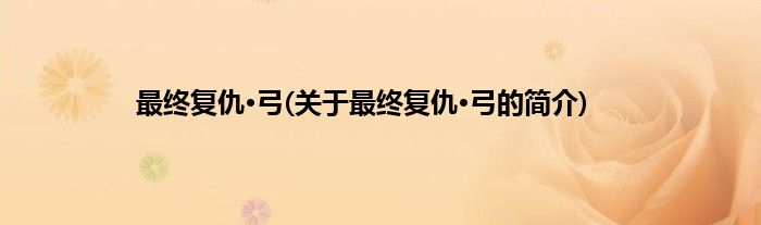 本文关于最终复仇·弓的简介就讲解完毕,希望对大家有所帮助。