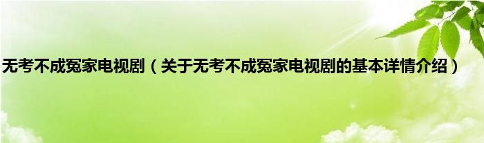 本文关于无考不成冤家电视剧的基本详情介绍就讲解完毕,希望对大家有所帮助。