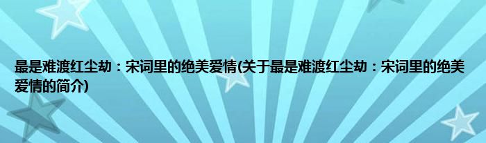 本文关于最是难渡红尘劫:宋词里的绝美爱情的简介就讲解完毕,希望对大家有所帮助。