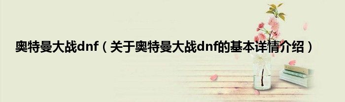 本文关于奥特曼大战dnf的基本详情介绍就讲解完毕,希望对大家有所帮助。