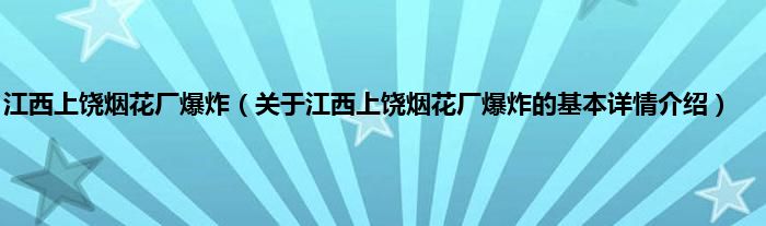 本文关于江西上饶烟花厂爆炸的基本详情介绍就讲解完毕,希望对大家有所帮助。