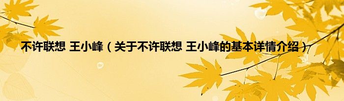 本文关于不许联想 王小峰的基本详情介绍就讲解完毕,希望对大家有所帮助。