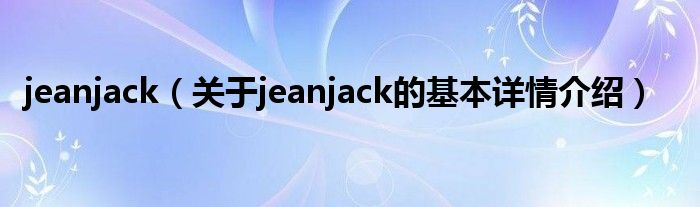 大家好我是小蝌蚪,jeanjack,关于jeanjack的基本详情介绍很多人还不知道,那么现在让我们一起来看看吧!