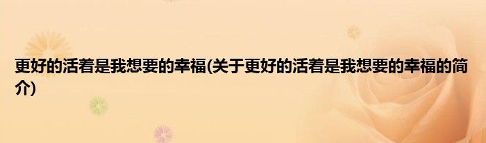 本文关于更好的活着是我想要的幸福的简介就讲解完毕,希望对大家有所帮助。