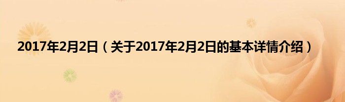 2017年2月2日(关于2017年2月2日的基本详情介绍)