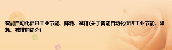 智能自动化促进工业节能、降耗、减排(关于智能自动化促进工业节能、降耗、减排的简介)